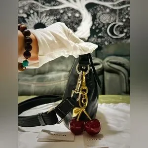 Vintage Coach small soho shoulder bag Black soft Leather Shoulder Bag with red Cherry Charm , good condition for vintage coach, other people sale $250-$350, I will do low price $189 , you can make offer or offer back too, very good deal , bundle bags other 10% off too, soft leather,Stylish Coach shoulder bag in black leather. Features a playful cherry charm. Perfect for everyday use