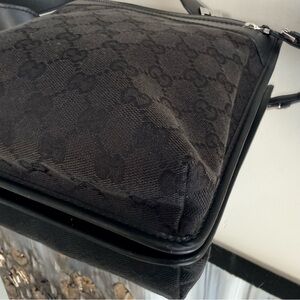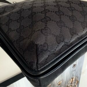 Gucci Black GG Canvas Crossbody Bag Unisex Italian Classic Silver Hardware