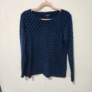 Talbots Women's Blue Top with Black Velvet Polka Dots Long Sleeve Shirt Medium