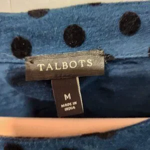 Talbots Women's Blue Longs Sleeve Pullover Top Shirt with Black Velvet Polka Dots. 100% Cotton. This top is great worn by itself or layered under something. This top shirt is in excellent condition.