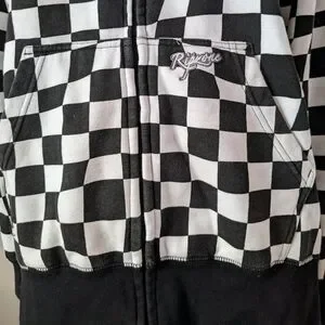 Ripzone Skateboard Checkered Black White Hoodie, Men's Large
