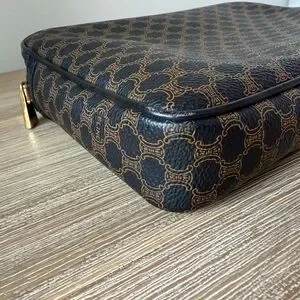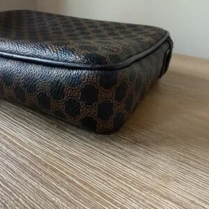 Elegant vintage Celine toiletry bag with a classic pattern. Features a secure zip closure and premium leather finish.