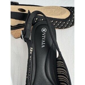 The Almond-Toe Slingback Wedge Sandals by Vivaia are stylish and comfortable women's shoes perfect for casual occasions during the summer, fall, and spring seasons. These slip-on sandals feature a mid-height wedge heel with an adjustable strap for a personalized fit. The multicolor striped pattern adds a trendy touch to the design, while the rubber outsole provides durability and support. Made with synthetic material and a breathable fabric lining, these sandals offer a comfortable and fashionable option for everyday wear.