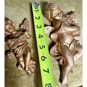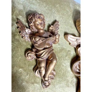 Cherub Angels Lot Wall Hanging Decor 7" Vintage Metallic Gold Hollywood Regency