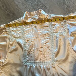 Vintage Elise Stevens Vintage Satin Flannel Lined High Neck Lace Ribbon Bub Mock Neck 1/4 Button Long Nightgown