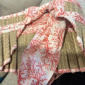 Elevate your style with this chic coral and tan woven visor. Perfect for adding a touch of elegance to any outfit.