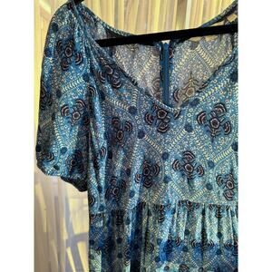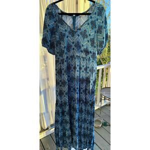 Boden V-neck Midi Dress Mosaic Blue Poppy Bloom Size UK14L US10L