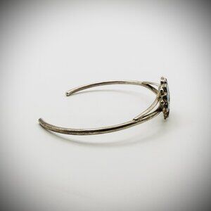 This cuff is unmarked but tests as sterling. Maker attribution is not confirmed. Sold as-is.