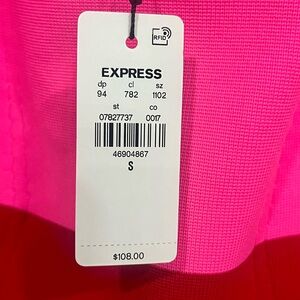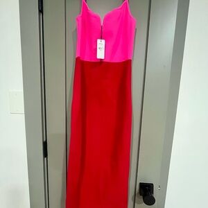 Vibrant maxi dress by Express. Features a bright pink bodice and bold red skirt. Ideal for making a statement.