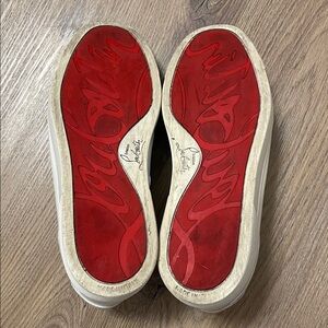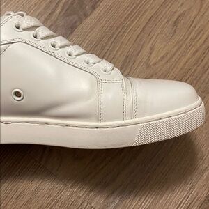 Christian Louboutin Vieira sneakers. White leather, size 38 fits 7.5/8 women’s. Worn but still lots of life left. Insoles have been replaced with Dr Martens leather insoles for more support. Please see pictures for condition.