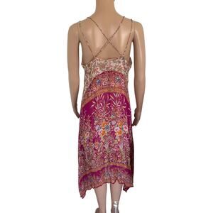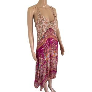 Lucky Brand Boho Floral Midi Dress Pink Multicolor Fairy Handkerchief Hem Festival S