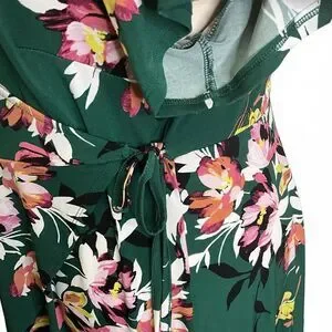 Torrid Women's Size 3, 2XL Green Floral Faux Wrapped Tunic Short Sleeve