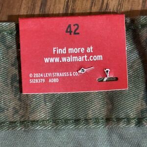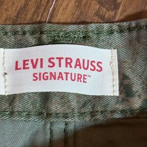 The product is a pair of men's shorts from Levi Strauss Signature, featuring a camouflage pattern in a size 42 waist. Made from cotton canvas fabric, these cargo shorts have a high-rise design and a button closure. The multicolor shorts also have a cargo pocket and are machine washable for easy care. Perfect for a casual and colorful look, these shorts originate from Bangladesh under the brand Signature by Levi Strauss & Co.