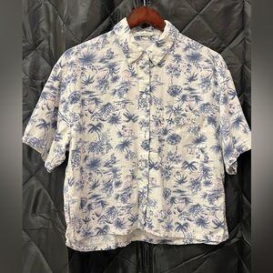Linen Blouse - Abercrombie & Fitch -Hawaiian blue & white print