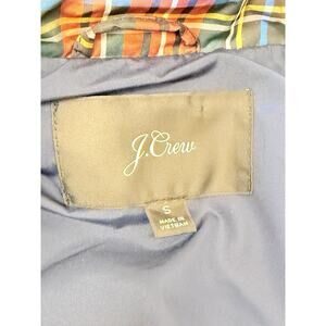 The J. Crew Zip Up Stewart Plaid Excursion Puffer Vest is a stylish and versatile outerwear option for women. Made of polyester with a cozy polyester lining, this quilted vest features a full zip closure and a flattering plaid pattern. The multicolor design adds a fun and fashionable touch to any outfit, making it a great addition to any wardrobe. This size small vest is perfect for layering in cooler weather and can be easily dressed up or down for various occasions.