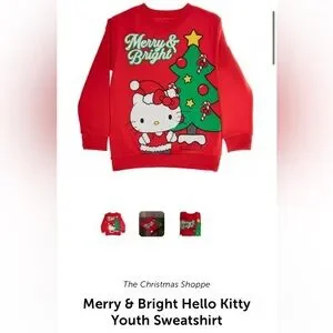 Hello Kitty Red Graphic Christmas Merry & Bright Tree Sweatshirt Crewneck
