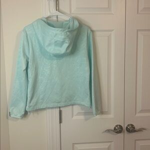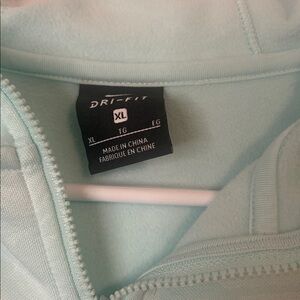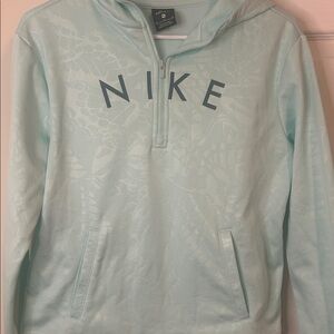 Aqua Nike hoodie with front logo. Soft and casual design.