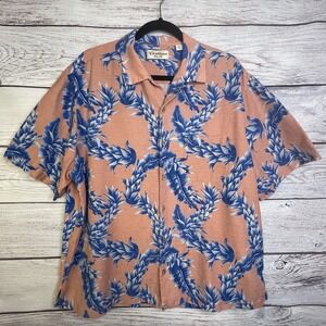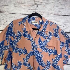 Caribbean Pure Silk Button Up Hawaiian Shirt Short Sleeve Collared Coral Mens XL