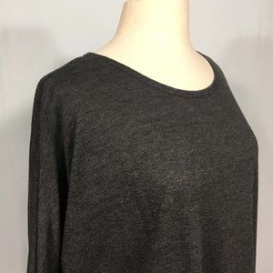 Womens oversized gray top. Round neck, batwing style 3/4 sleeves. Hi lo hem (shorter in front. T-shirt type fabric
