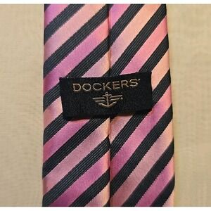 Dockers ~ Polyester Necktie ~48 Long 2.5 Wide~ Striped Pink Black