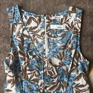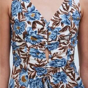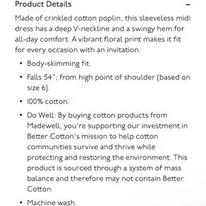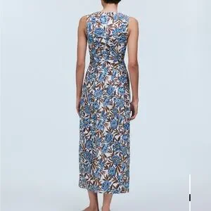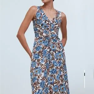 Madewell midi dress with a floral pattern and fun cutouts. Features v-neck, a sleeveless design and a flattering fit.
