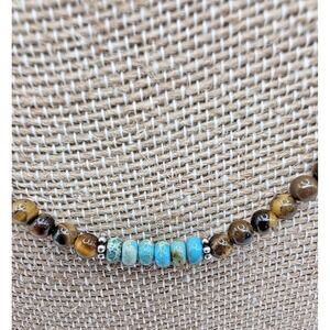 Natural Tigers Eye Round Beads Natural Turquoise beads Necklace 18" Dainty NWT