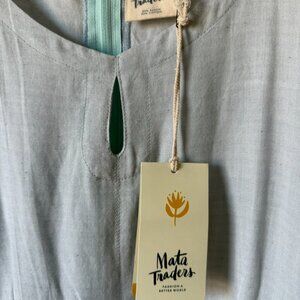 Mata Traders light blue dress w/ pockets and side zipper. 50/50 Rayon/Cotton. M. Fair trade.