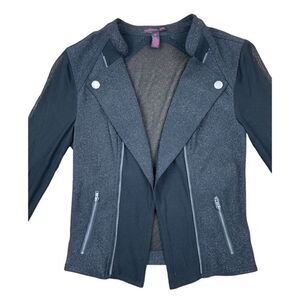 Material girl black sparkly blazer with sheer sleeves and back