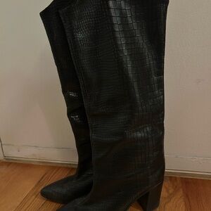 Size 8. Croc embossed Schutz Maryana block heeled boots. Worn but in very good condition.