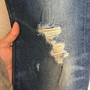 Dark blue slim jeans with a modern distressed design. Ideal for everyday wear. From anthropology size 27