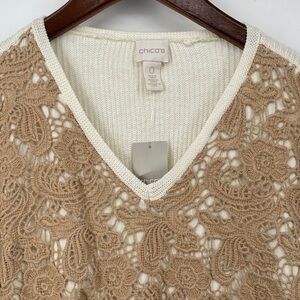 Chico’s V-neck with lace front. Soft cream sleeves.