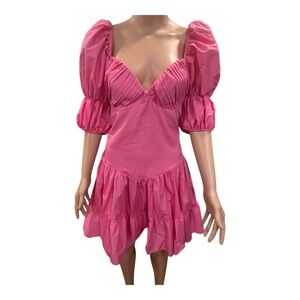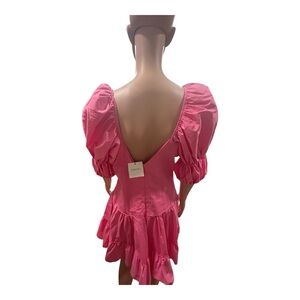 Chic mini dress with bold puff sleeves. Vibrant pink hue. Perfect for standout style.