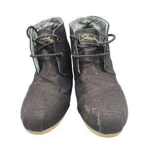 Bobs From Skechers Wedge Booties Black Wrap Style Heels Shoes Womens Size 8