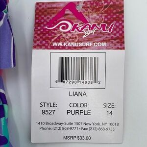 Kanu Tropical Purple Ruffle Top Swimsuit Bathing Suit Bikini Two Piece Swim Set