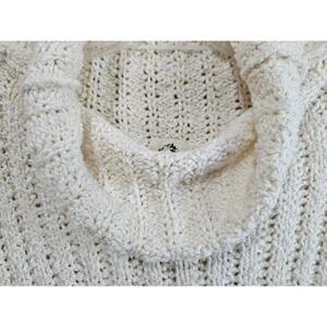FREE PEOPLE We The Free Women's Size XS Oversized Sweater - Cable Knit, Cream, Cowl Neck, Long Sleeve, Wide Cuff, Side Slits, 84% Organic Cotton, 16% Acrylic