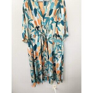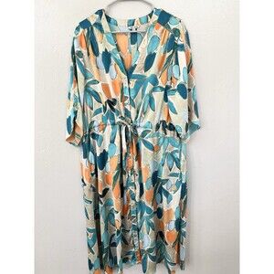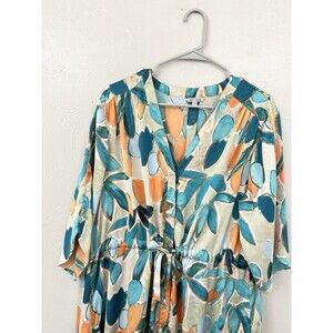 NIC+ZOE Floral Crepe Maxi Dress Size XL Women’s Caftan Pockets Travel $218 Boxy