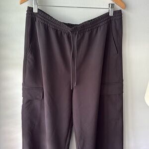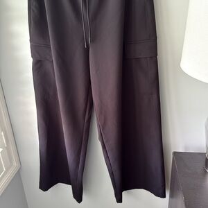 Athleta Promenade High Rise Cargo Pant in Black. Size L. Fits oversized and would work for an XL as well. In excellent condition, worn only twice before I ended up going a size down. Features drawstring waist, oversized fit, open pockets at hips and side cargo pockets.