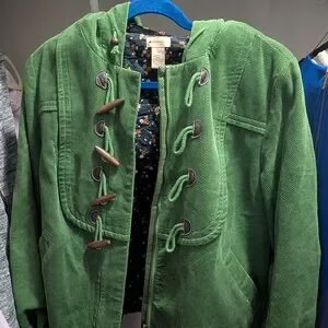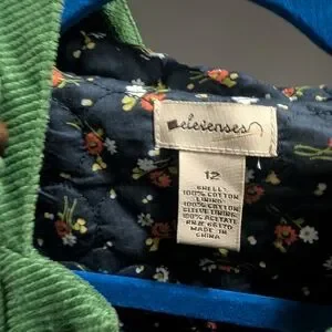 Elevenses Green Corduroy Jacket Size 12 with Floral Interior