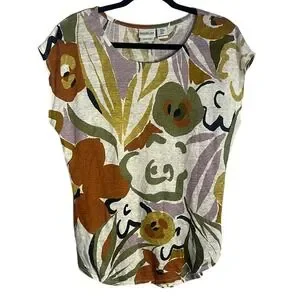 Rachel Zoe Women's Relaxed Floral‎ Cap Sleeve Blouse Medium