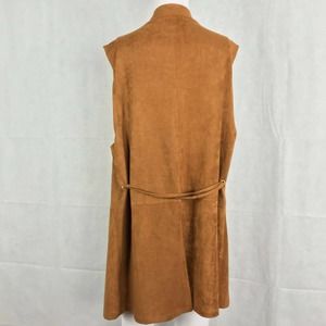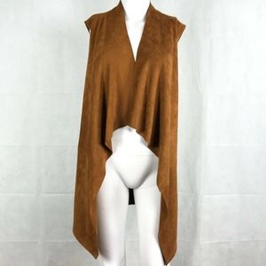 Mudpie Womens Brown Faux Suede Open Front Sleeveless Mid Length Cardigan Open front Angled hem Faux suede