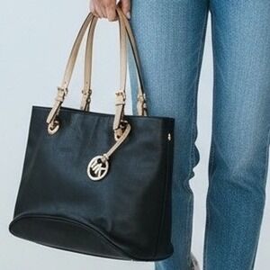 Michael Kors Black Leather Tote Bag Gold Hardware soft S 16. 38T6YTTT8L