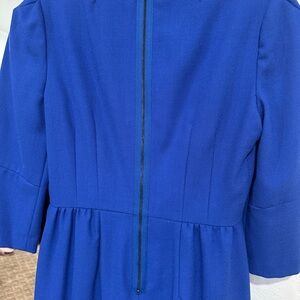 Classic and chic royal blue dress from J.Crew featuring a flattering fit with 3/4 length sleeves and a pleated skirt. Perfect for work, events, or brunch with friends!