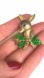 Elegant gold reindeer brooch featuring vibrant green leaves and red accents and a blue rhinestone eye.