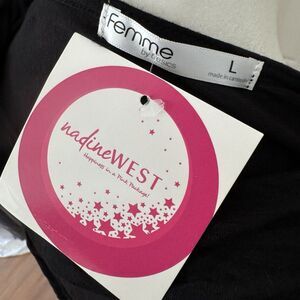NEW Femme Black Two Tone Blouse Sz L Sexy Top Stretchy Dressy Office Dark