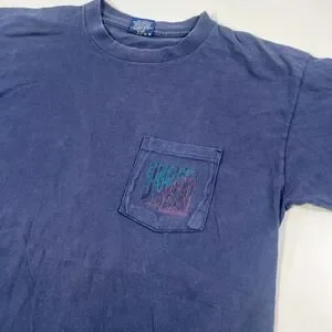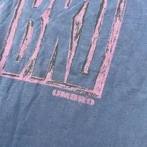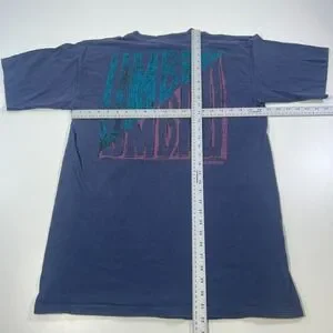 The Vintage Umbro Shirt is a men's large navy blue double-sided t-shirt featuring a graphic print with a soccer/futbol theme. Made of cotton, this short sleeve tee showcases the Umbro logo and is machine washable. Perfect for fans of 90s sports apparel, this shirt is ideal for summer and spring seasons, offering a regular fit for comfortable wear. The USA theme adds a touch of nostalgia to this classic piece of United States-made clothing from the 1990s.