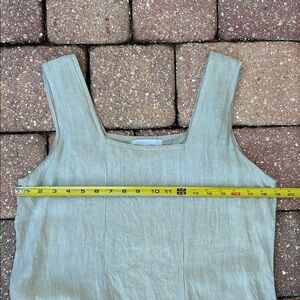 Beautiful 100% linen sheath dress by FLAX. Sleeveless with a flowy oversized fit, large patch pockets on the front and side slits!