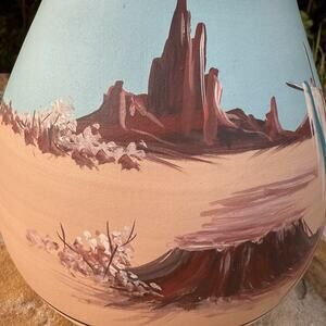 VTG Navajo Native American Sisters Desert Mesa Hand Painted Pottery Vase Signed