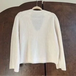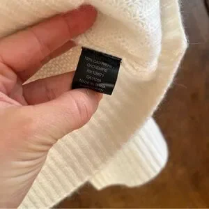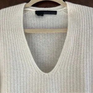 100% Cashmere White Knit V Neck Sweater