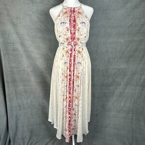 Free People Dress Women 6 Cream Floral Halter Maxi Fairy Whimsy Beach Boho Flowy
