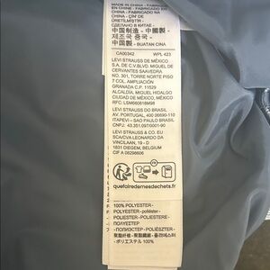 Stylish denim puffer jacket by Levi's. Features a cozy hood and front pockets. Ideal for cold weather. NWT